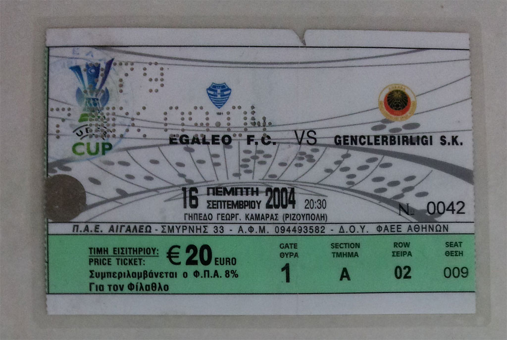16.Eylul.2004.UEFA.Kupasi.1.Tur.1.Maci.Egaleo1-0Genclerbirligi.Mac.Bileti03 Haziran 20131024 × 6872004-05 Sezonu UEFA Kupası 1. Tur: Egaleo